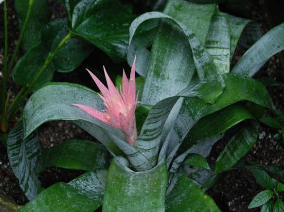 Include bromeliads, another long bloomer with unique tropical flowers. Those with pliable leaves are more tolerant of lower light, while the stiff-leafed bromeliads need bright light to thrive. Water the soil often enough to prevent the roots from drying. After weeks and even months of flowering, the plant eventually dies but forms offsets, known as pups, you can grow to maturity.