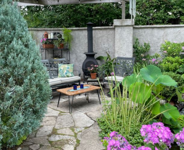 Decide how you plan to use the space. Are you longing for a quiet area to relax and read, one to entertain or a space to accommodate all your outdoor activities? Select furnishings with the color, form, and style that will create your desired look and feel. Then select plants, containers and accessories that complement the furnishings for your outdoor oasis. Add a stand-alone or wall-mounted fountain or container water garden to the space. The sound of moving water helps create a sense of peace and relaxation, calming the mind, reviving the spirit and masking noise pollution. No need to worry about mosquitoes taking residency in your water feature. Moving water is less appealing and adding an organic product like Summit® Mosquito Dunks® to water features prevents mosquitoes from breeding there. Just toss this donut-shaped cake of Bacillus thuringiensis israelensis (Bti) into the water. This naturally occurring bacteria only kills the mosquito larvae but doesn’t harm people, pets, fish or wildlife. Further reduce mosquito problems by lighting a few citronella candles and placing them near you and others enjoying the space. Use a fan to help keep you cool and the weak-flying mosquitoes away.