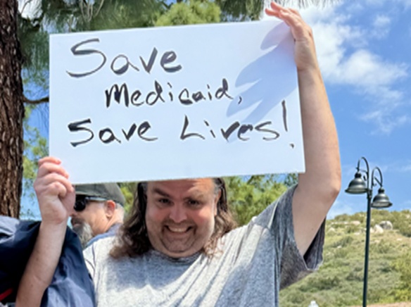 People with disabilities, advoÂcates and comÂmunity members gathered outÂside Rep. Darrell Issa’s office in Santee recentÂly during a rally opposing proÂposed Medicaid cuts. Issa, whose district includes Alpine, voted to advance a budget plan that slashes funding for MedÂicaid.